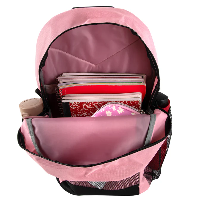 With its two large mesh side pockets and two large front pockets, you have enough space for your school supplies.