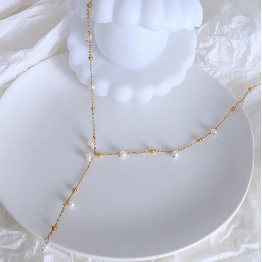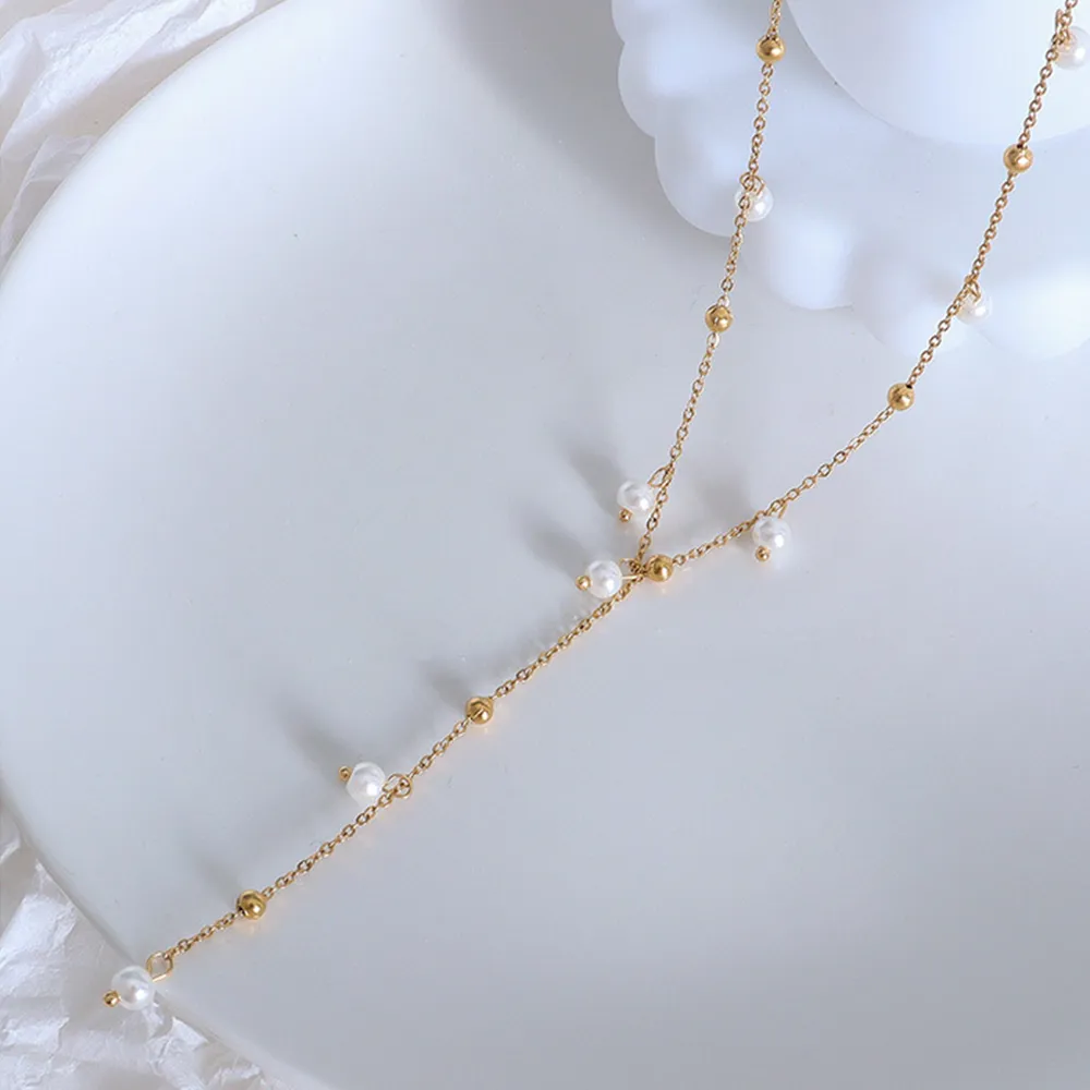- Material: Synthetic pearl, 18K gold-plated titanium steel