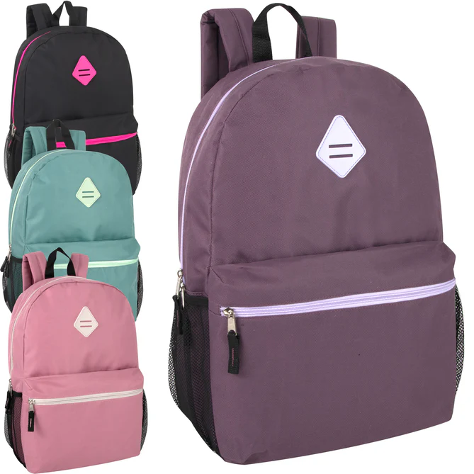 Each pack has a contrasting lash tab for affixing external gear, providing even more space for school supplies.