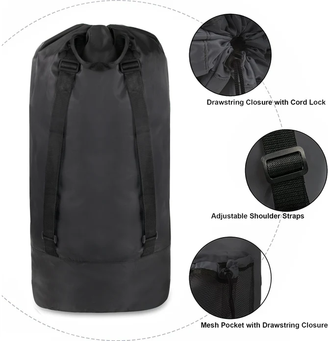 This Backpack has an easy-access front mesh pocket and drawstring closure, ideal for transport and storage.