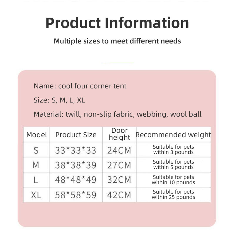 Summer Four Corner Tent Cat House Foldable Cat House Semi Closed Dog House Removable Pet Supplies