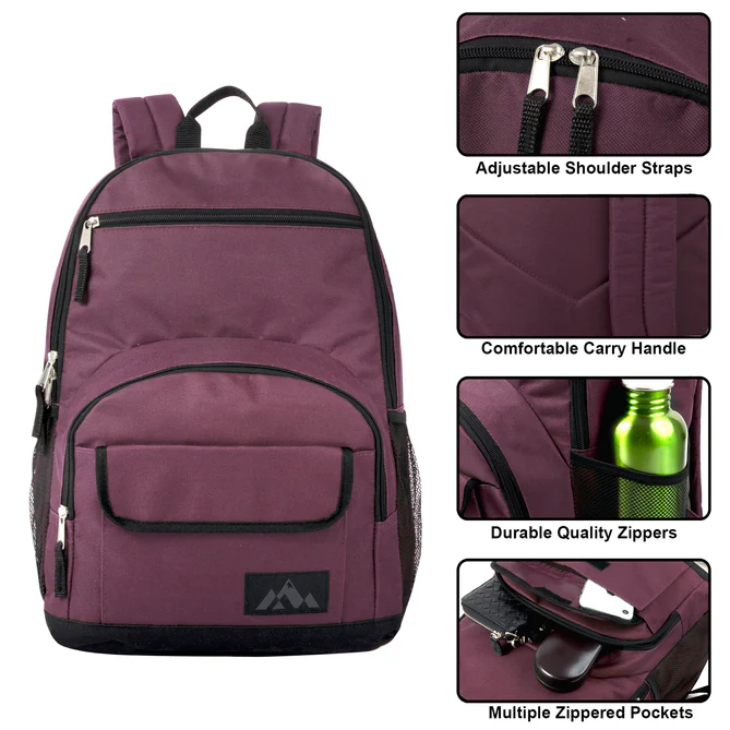 It has two mesh side pockets and two front additional quick-access storage pockets for water bottles or cans.