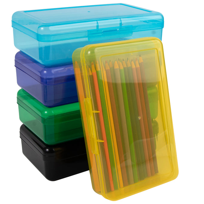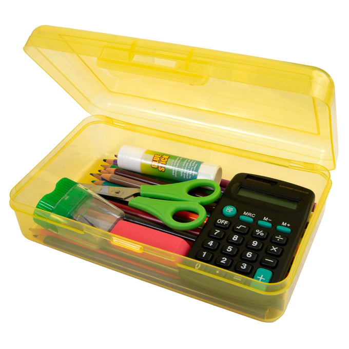 Our transparent plastic pencil box helps to keep your pencils organized and easy to find! Available in assorted colours, perfect for students and artists alike.