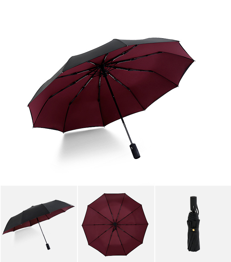 Fully automatic double-layer 10-bone rain- and wind-resistant triple fold